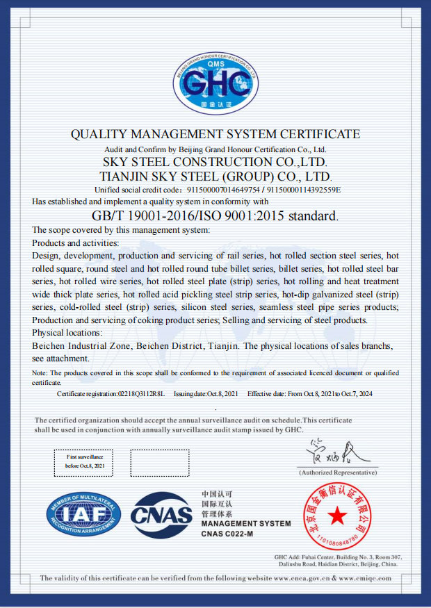 Sky STeel Construction Co.,Ltd — крупное современное совместное предприятие по производству стали, объединяющее процессы агломерации, производства чугуна, стали, непрерывного литья, проката стали и производства металлопродукции. В настоящее время в компании работает более 300 сотрудников, а также имеются передовые технологии высокочастотной сварки. производственные линии, 12 шт. Имея более чем 30-летний опыт работы в производстве стали, мы можем предложить разнообразные решения, удовлетворяющие клиентов.
